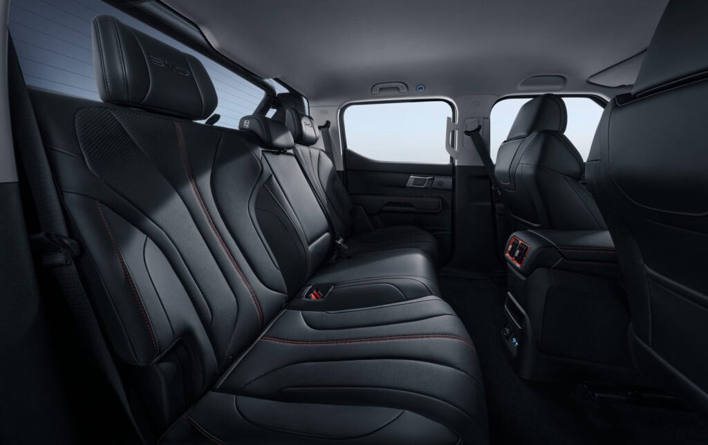 تجمع مقصورة BYD Shark 6 بين الفخامة والتقنية الحديثة، حيث تأتي مزوّدة بنظام صوتي فاخر من Dynaudio يضم 12 سماعة توفّر تجربة سمعية غامرة. كما تحتوي على شاحن لاسلكي للهاتف ومنافذ USB-C وUSB-A في الأمام والخلف لسهولة الاتصال والشحن.