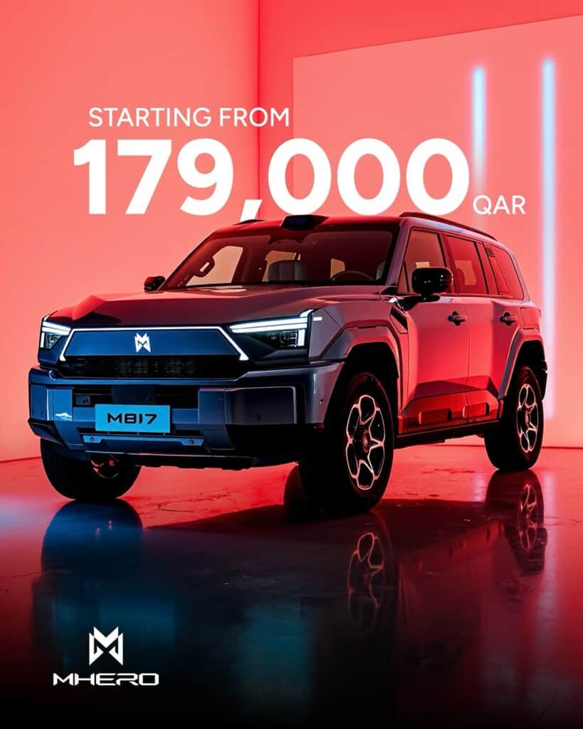 حيث أفادت الواحة للسيارات أن سعر سيارة إم هيرو 2 إم817 يبدأ من 179,000 ريال قطري، لتدخل بذلك المنافسة في فئة سيارات الدفع الرباعي المتوسطة ذات الطابع القاسي والتقنيات الحديثة.