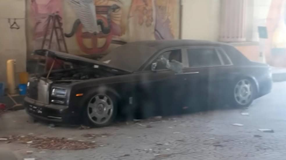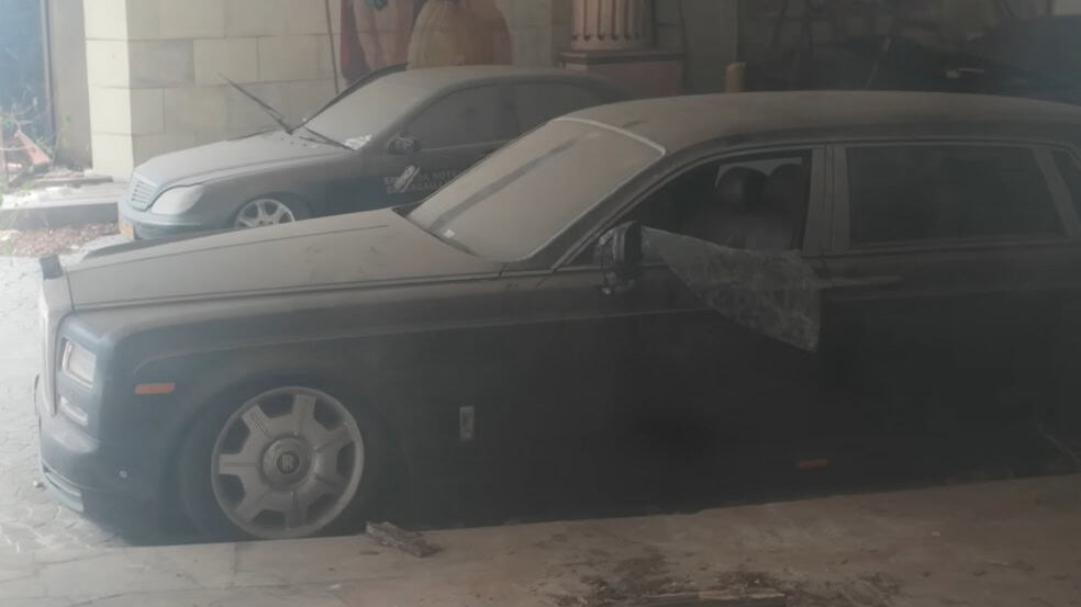 حيث نشاهد أمام المدخل الرئيسي للفندق، 3 سيارات رولز رويس فانتوم وقد تعرّضت للتخريب، فيما تقف بالقرب منها مرسيدس-بنز اس كلاس قديمة مغطاة بطبقة كثيفة من الغبار والأوساخ أيضاً.