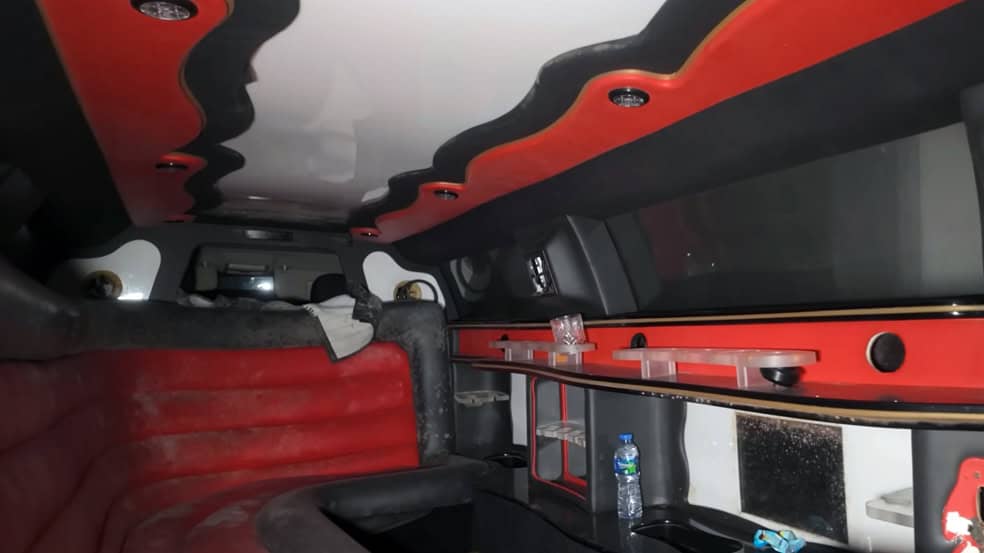 وتتوقّف بين الأشجار ليموزين (طويلة) همر H2 تتّسع لما يصل إلى 18 راكبًا.
