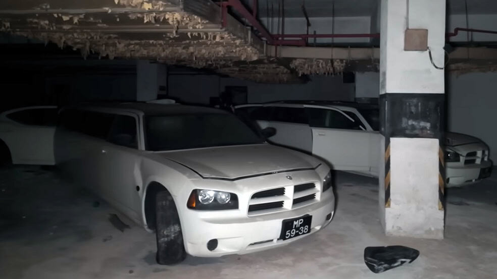 كما نجد أكثر من سيارة ليموزين من نوع دودج تشارجر في المرآب السفلي، والذي يحتوي أيضاً على أودي A8 بيضاء وبورش كايين، وسيارات أخرى مركونة في الظلام.