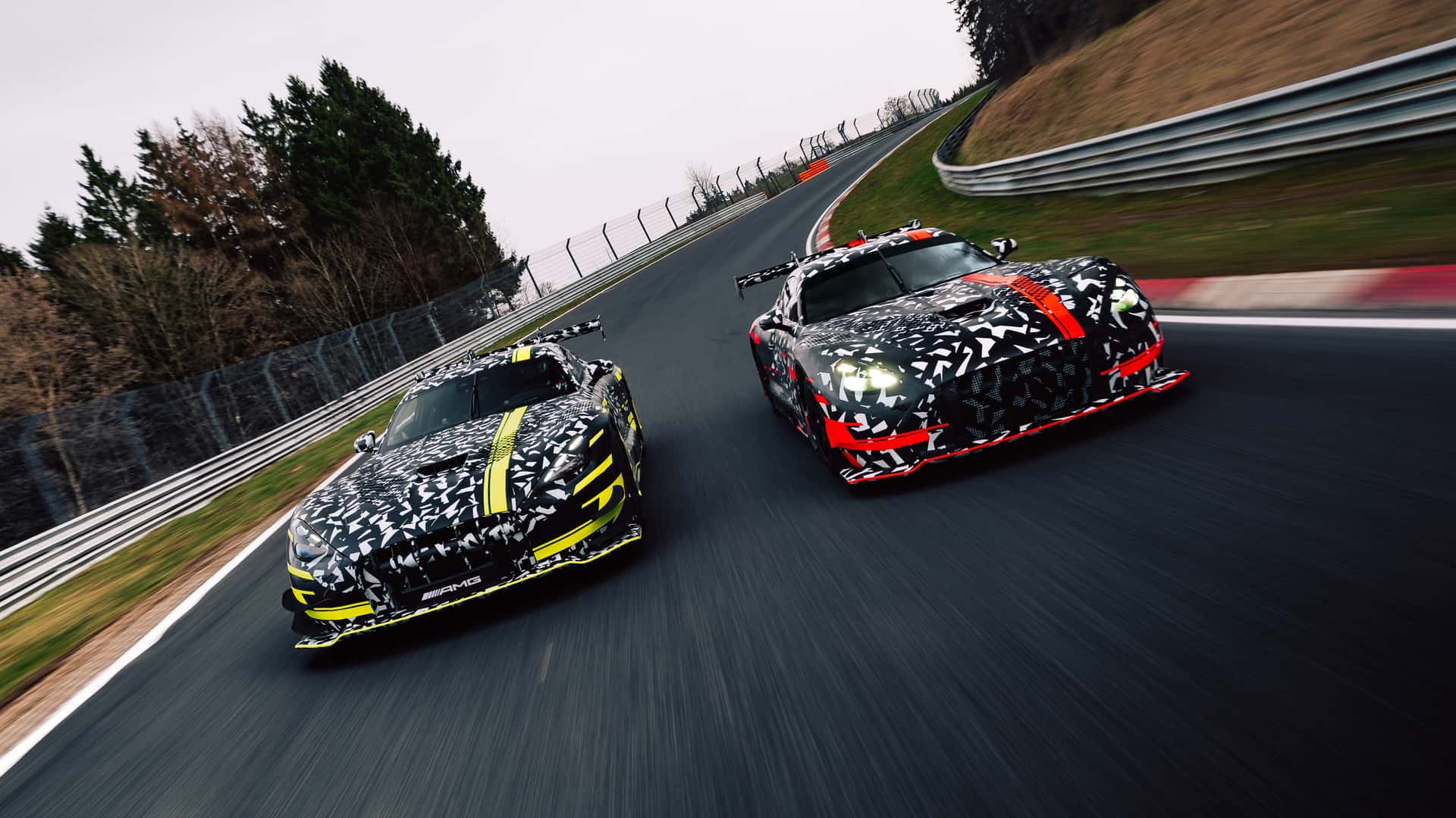 أظهرت الصور التشويقية سيارتين توأمين يصعب التفريق بينهما للوهلة الأولى؛ الأولى هي سيارة سباق جي تي 3 مخصصة للحلبات تتميز بلمسات حمراء وإطارات ناعمة سليك، والثانية هي بطلة قصتنا اليوم، نسخة بلاك سيريس (Black Series) القانونية للطرقات تتميز بلمسات باللونين الأصفر والأخضر وإطارات ميشلان سبورت كاب 2.
