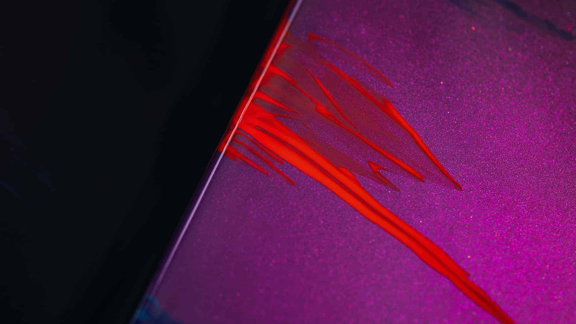 داخل السيارة، ستجد ديكورًا جلديًا ثنائي اللون يحتوي على المزيد من اللونين الأرجواني والأسود، يتضمن نفس النمط بخطوط من الألوان الدافئة والباردة متناثرة في كل مكان.