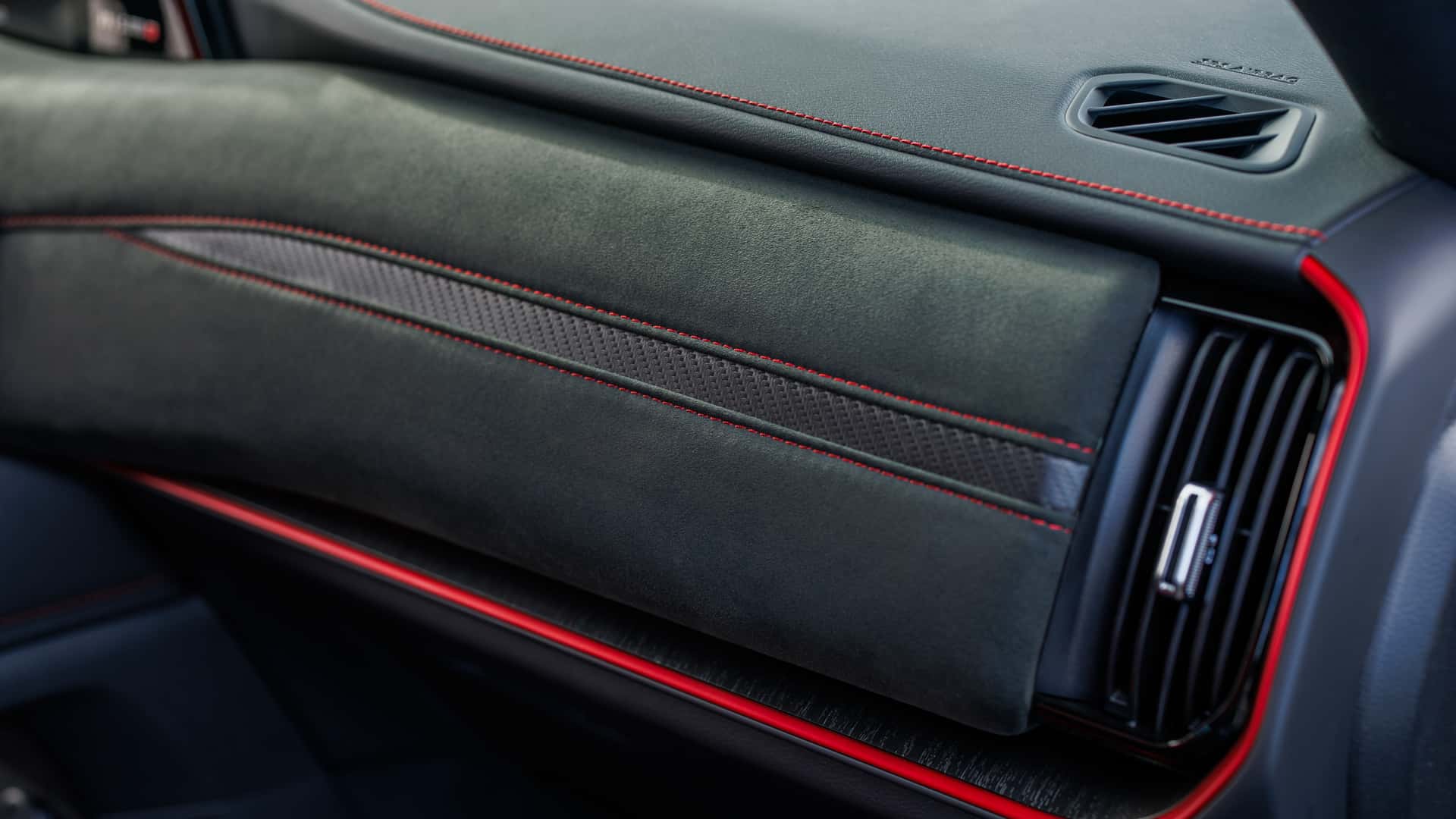 - تمتلك مقاعد جلدية بلمسات حمراء وتنجيدة خاصة من نيسمو مع تثبيت جانبي محسّن لمزيد من الراحة أثناء القيادة السريعة.