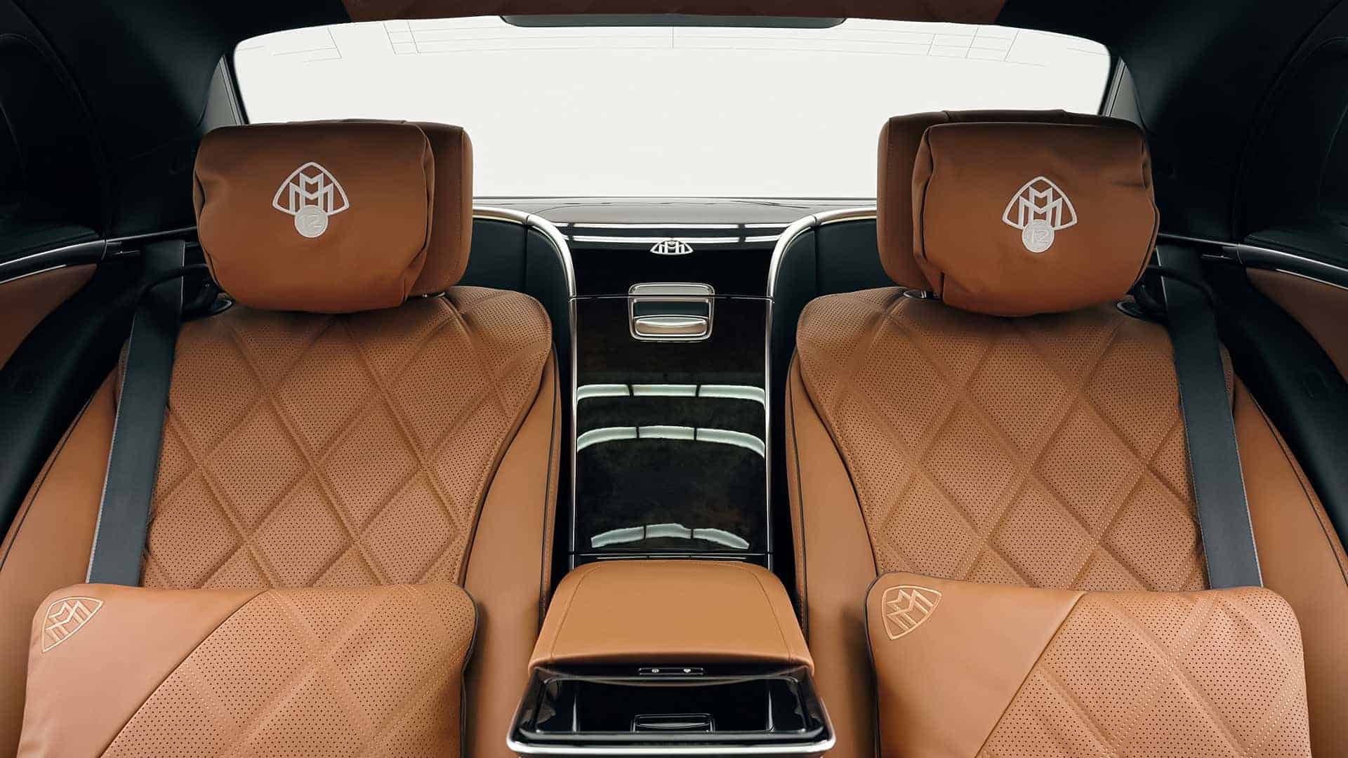 الداخلية في هذه السيارة الألمانية الفخمة الحصرية الجديدة ليست مجرد مقصورة، بل قصر متحرك يجمع أجود المواد وأرقى اللمسات. المقاعد مكسوة بجلد بني فاخر، فيما تمتد تطعيمات من الخشب الطبيعي ”خشب الجوز“ إلى لوحة القيادة وعجلة القيادة، لتضيف إحساسًا بالدفء والرقي. السقف مبطن بتطريز ماسي أنيق يمنح المقصورة بعدًا بصريًا مترفًا.