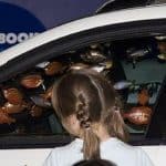 جذبت هذه السيارة والأسماك في داخلها زبائن هذا المركز وبالأخص الأطفال الذين استمتعوا بمشاهدة الأسماك وهي تسبح داخل المركبة.