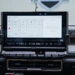 سيارة همر 2023 جديدة من الداخل تأتي نسخة اديشن 1 مع كسوة تجمع بين الأسود ورصاصي فاتح ولمسات برونزية ، وشاشة عملاقة حجم 13,4 إنش في المنتصف وخلف المقود يوجد شاشة حجم 12,3 إنش .