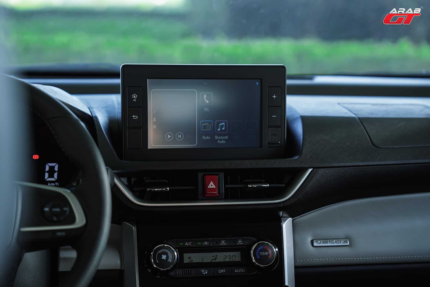 من الداخل تأتي مع العديد من أماكن التخزين وحاملات الأكواب ، وتمتلك شاشة عدادات رقمية حجم 7 إنش ، وشاشة وسطية حجم 8 إنش تعمل باللمس تتضمن بلوتوث و اندرويد اوتو .