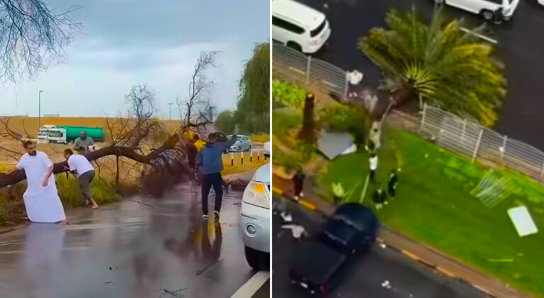 فزعة شباب الإمارات لإزالة أشجار سقطت على الشوارع