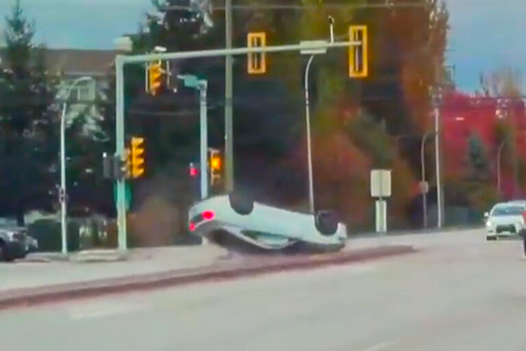 لحظة انقلاب موستنج بعد تلقيها صدمة من جيب
