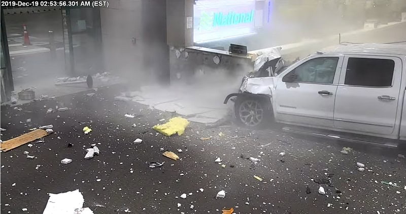 شاهد فيديو : في حادثة غريبة.. مركبة تسقط بين جدارين