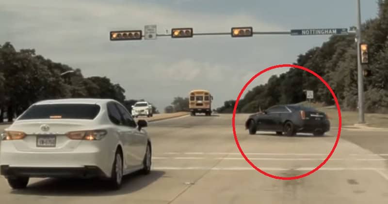 شاهد فيديو : سيارة كاديلاك تقطع الاشارة الحمراء وتخرج عن السيطرة