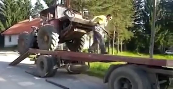 محاولة نقل تراكتور تنتهي بطريقة كارثية