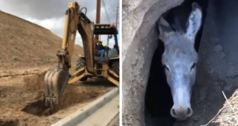 شاهد فيديو : انقاذ حمار سقط في حفرة باستخدام حفارة