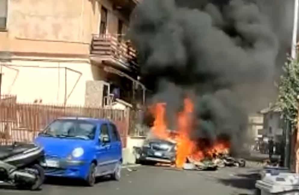 اصطدام طائرتين وسقوط أحدهما على سيارة